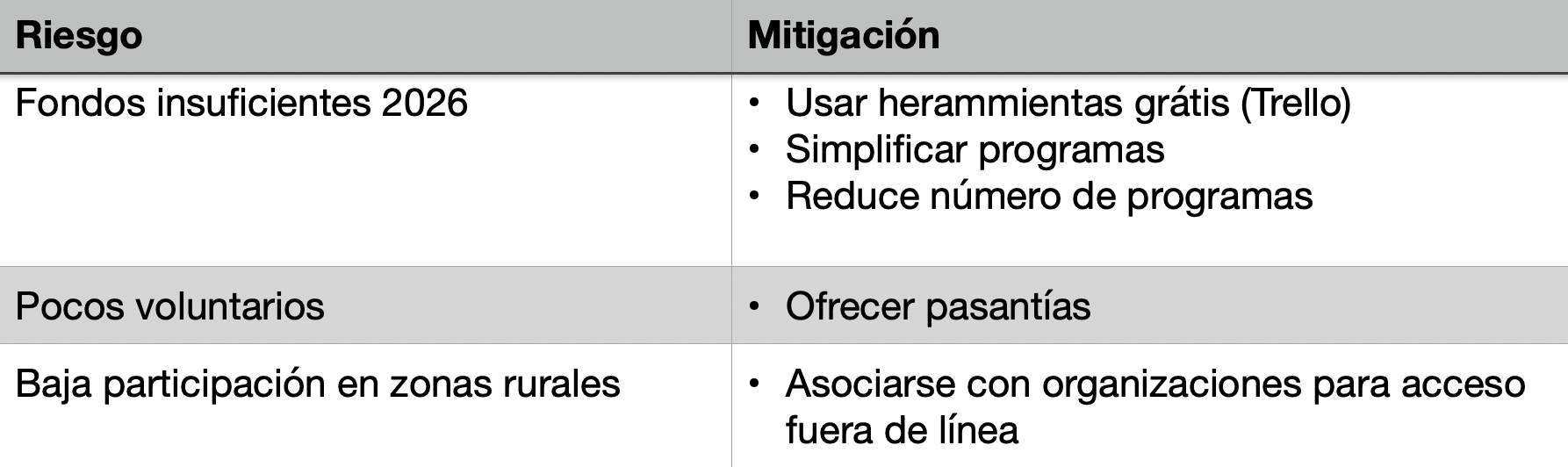 Bridges Strong es una organización sin fines de lucro dedicada a proporcionar educación accessible en ingeniería para adultos (18-50 años) en comunidades de bajos recursos de EE. UU. y América Latina. Haciendo frente a las marcadas brechas en la educación STEM —solo el 23% de los adultos de 25 a 64 años en América Latina y el 30% en zonas rurales de EE. UU. poseen títulos de educación superior—, empoderamos a las personas para innovar y resolver desafíos locales. Nuestros programas bilingües y adaptables a cualquier formato, utilizan videos en línea, talleres y vinculaciones para fomentar empresas impulsadas por la comunidad. Para 2030, nuestro objetivo es llegar a 5,000 estudiantes, apoyar más de 100 empresas y contribuir con $500,000 a las economías locales a través de más de 50 proyectos. Hasta julio de 2025, hemos lanzado cuatro videos piloto (tres en inglés, uno en español), con la meta de alcanzar 500 vistas en YouTube y nuestro sitio web para el cuarto trimestre de 2025. Esta línea maestra detalla nuestra estrategia para alcanzar estos objetivos, buscando más de $500,000 anuales de empresas, fundaciones y donantes privados para generar impacto.